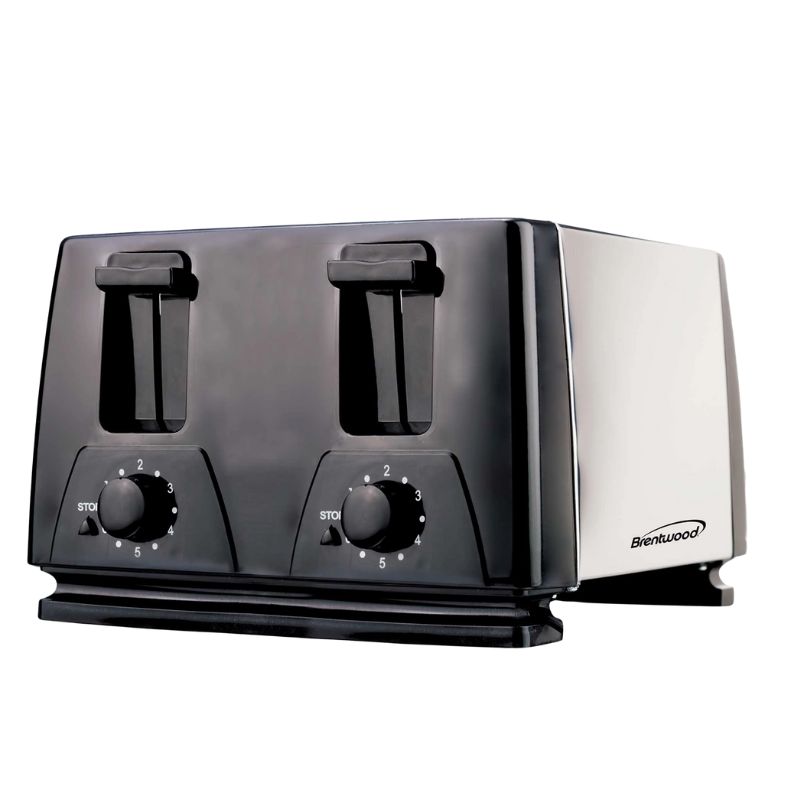 Use this powerful 1300 watt Brentwood TS-284 4-Slice Toaster to save time in the morning when preparing breakfast for the family. Choose level of toast with 6 setting, light to dark dials. Auto centering guides insure even toasting. Individually cancel each toasting cycle using the cancel buttons. Right and left side crumb trays are located on the bottom of the toaster.