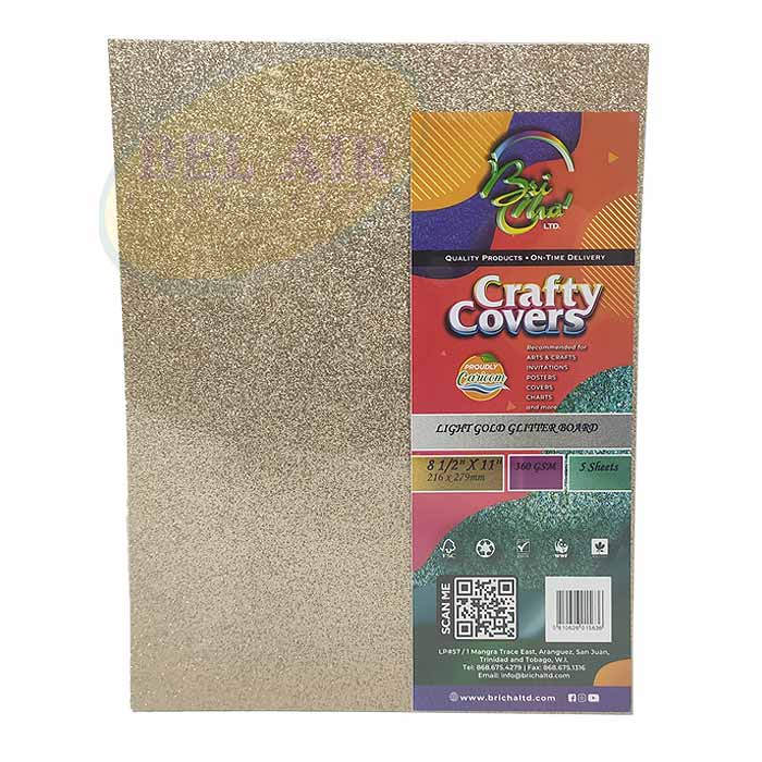 BriCha Crafty Covers Light Gold Glitter Board 360gsm 5pk