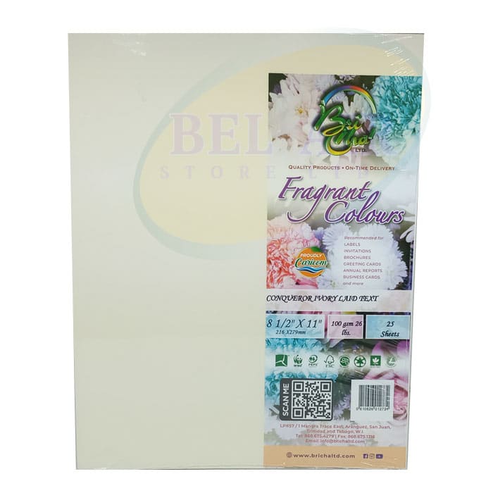 BriCha Fragrant Colours Conqueror Ivory Laid Text 100gsm 25pk