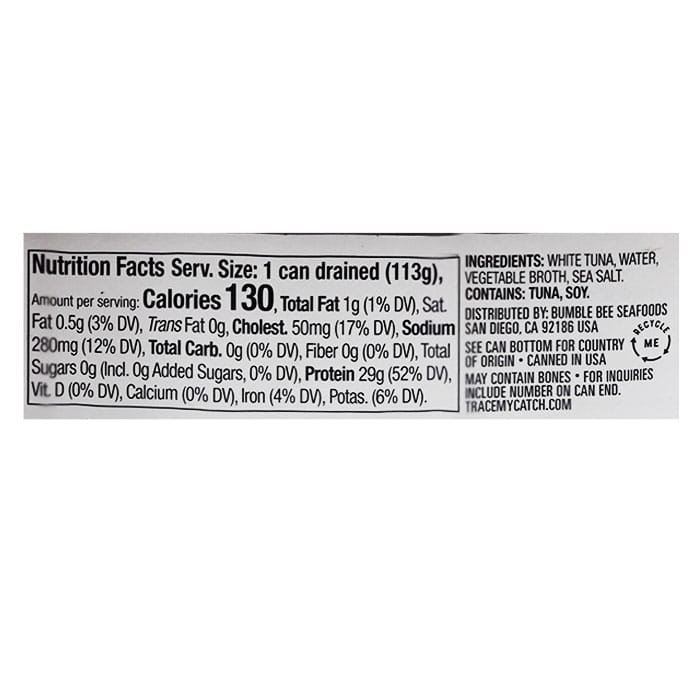 Bumble Bee Solid White Albacore Tuna is quality you can see the moment you open the can. Firm, light and fresh tasting this tuna is the perfect ingredient to enhance your favorite dishes with a delicious, mild flavor, a variety of nutrients and lean protein. Bumble Bee Tuna in Water will satisfy you and your family whenever you want a tasty and healthy snack or meal.