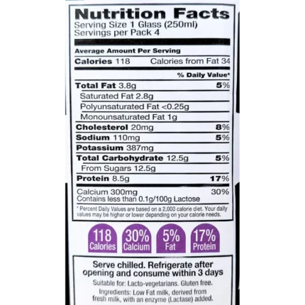 Perfect for individuals who are lactose intolerant but still want to enjoy the taste and benefits of milk. Moo! Lactose-Free UHT Milk goes through a special process to remove the lactose while preserving the natural nutrients and delicious flavor. Whether you use it in your morning coffee, cereal, or recipes, you can trust that Moo! Lactose-Free UHT Milk will provide a creamy and satisfying experience without any digestive discomfort. Enjoy the goodness of milk without the worry with Moo!