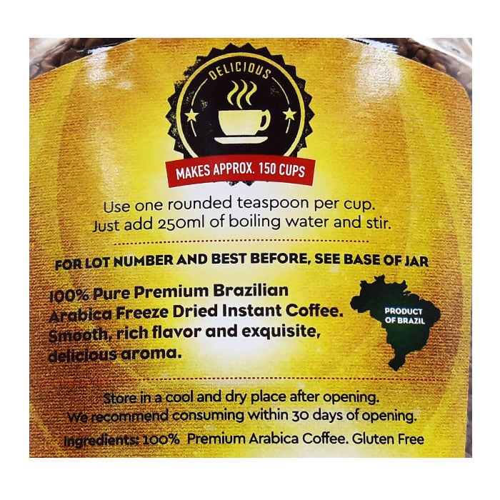 Cafe Brasil Gold Coffee is 100% pure granulated coffee that offers the authentic taste of coffee in every sip. The coffee is finely sorted and roasted to perfection to deliver a mix that retains its qualities for a long time. This smooth coffee mix is an excellent way to start a fresh day or catch up on some important moments.