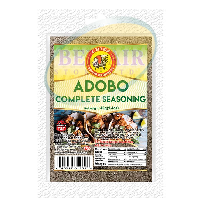 Chief Adobo Complete Seasoning is an all-purpose seasoning. Use in meats, fish, and even vegetarian dishes like soups, beans, rice, and even eggs! Any time you want a deep, flavorful addition to a recipe, just reach for this great seasoning mix!