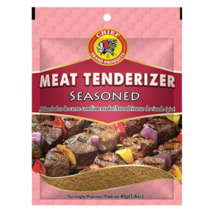For any hard textured meats, Chief Brand’s Meat Tenderizer contain elements of bromelain, ficain and papain which are all natural extracts from fruits that help break down fibrous protein strands and peptides in hard cuts of meat. Just sprinkle some on when seasoning your meats and it surely yields favorable tender rewards.