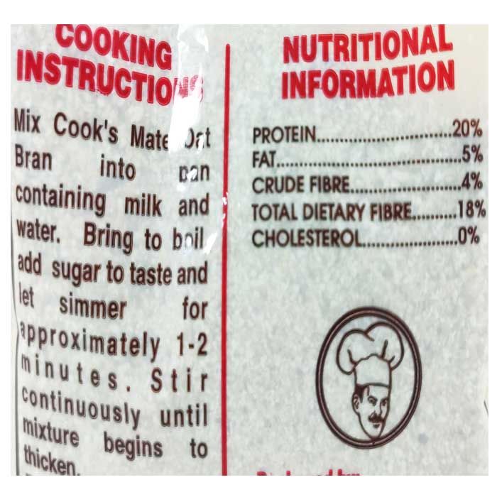 Oat Bran is milled from the two layers which are found beneath the outer husk or hull of the oat grain and they are particularly rich in soluble fibre. Cook’s Mate Oat bran is available in a 226g pack.