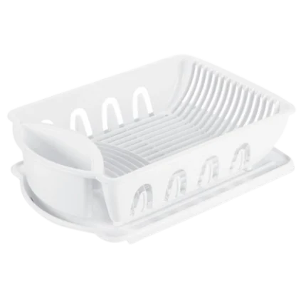 The Sterilite 2 Piece dish drying rack sink set is made for use in the kitchen sink area and is ideal for drying flatware, plates, bowls, cups and is easy to clean.
