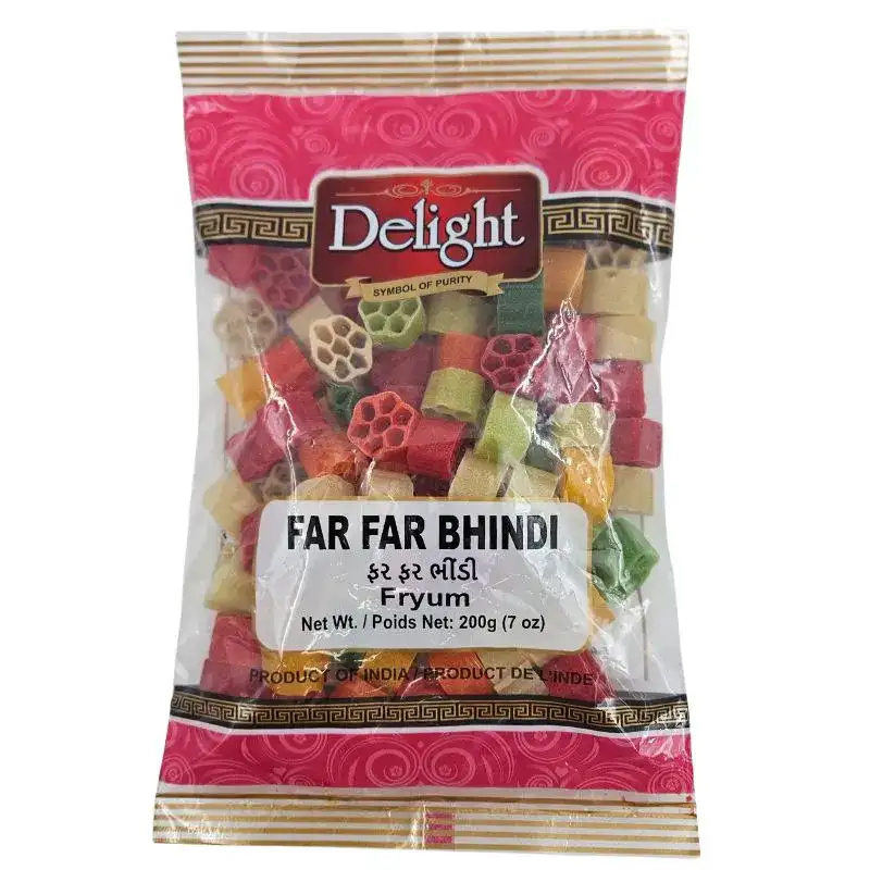 Delight Far Far Bhindi 200G is a crispy and flavorful snack made from dried okra slices. Its key features include a light and crunchy texture, authentic Indian spices, and a convenient resealable packaging. The benefits of this product include being a healthy and satisfying alternative to traditional snacks, as well as being suitable for vegetarians. Its unique selling points are its delicious taste, long shelf life, and versatility as a snack or accompaniment to meals.