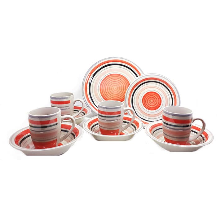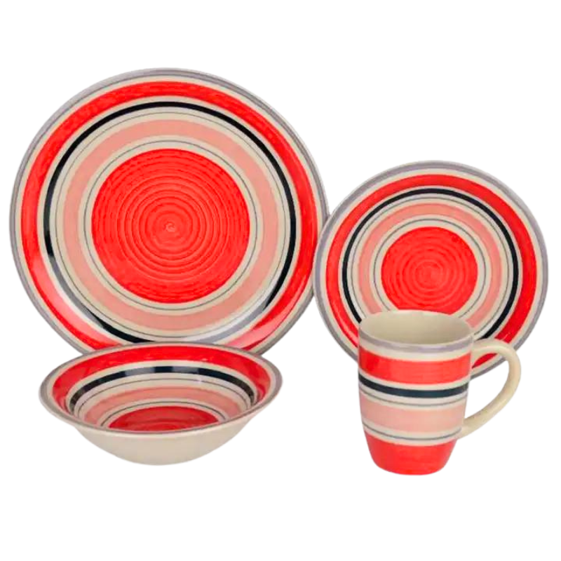 A stunning accent to your table, this sixteen piece Dinnerware Set by Royal Line comes complete with Four Dinner Plates, Four Dessert Plates, Four Bowls and Four Mugs. Beautifully coloured and made of stoneware, this set is ideal for special occasions and even everyday use. It’s also perfectly packaged to give as a gift!
