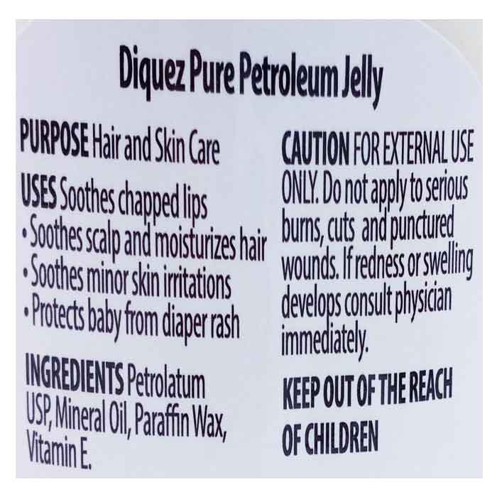 Diquez Pure Petroleum Jelly 350G heals dry skin and helps protect minor cuts, scrapes and burns. It also protects the skin from chafing and reduces the appearance of fine, dry lines.