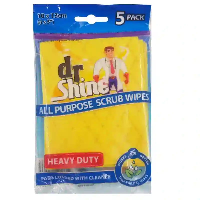 Dr Shine All Purpose Scrubwipes (Model: BC0472) are versatile cleaning wipes that effectively remove dirt, grime, and stains from various surfaces. The key features include a durable scrubbing side for tough messes and a soft side for gentle cleaning. The wipes are pre-moistened with a powerful cleaning solution, making them convenient and easy to use. The unique selling points of Dr Shine All Purpose Scrubwipes are their ability to tackle a wide range of cleaning tasks, their dual-sided design for versatile cleaning, and their strong and durable construction.