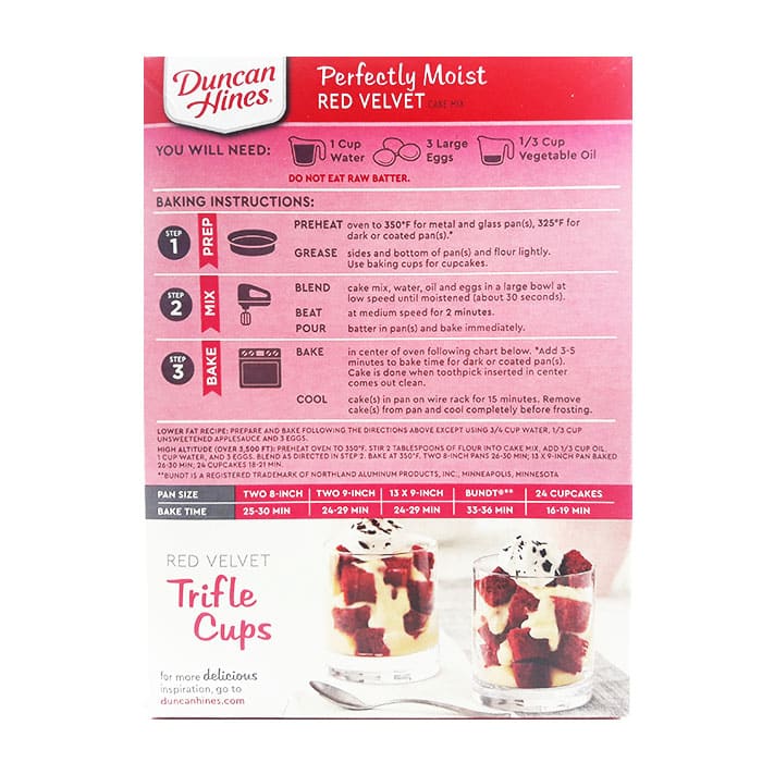 Everyone you love deserves a Duncan Hines Perfectly Moist Red Velvet Cake. When you bake a cake it’s likely a special treat for the special people in your life. You care enough to take the time to bake a cake with a signature red color, so make it the moistest, most delicious cake you can. Make it Duncan Hines!
