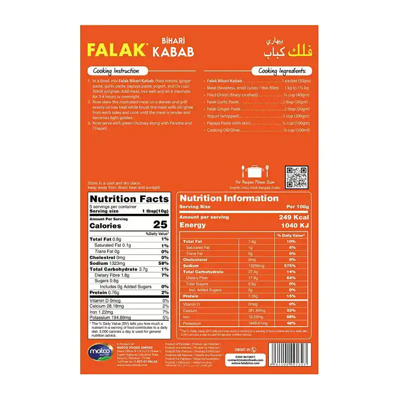 Falak Bihari Kabab Seasoning Mix is a rich and aromatic blend of traditional Indian spices, capturing the authentic taste of classic Bihari kababs, delivering smoky, tender, and flavorful results every time. Perfect for beef, chicken, or lamb, it’s your shortcut to restaurant-quality kababs at home.