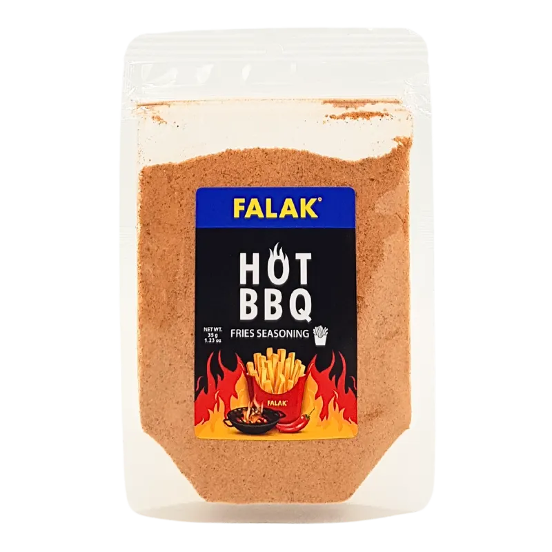Falak Hot BBQ Fries Seasoning is the perfect seasoning for French fries to give them that extra cheesy spicy kick!