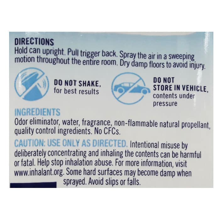 • Do not use on fabrics, near an open flame, or (as with all air care products) near birds