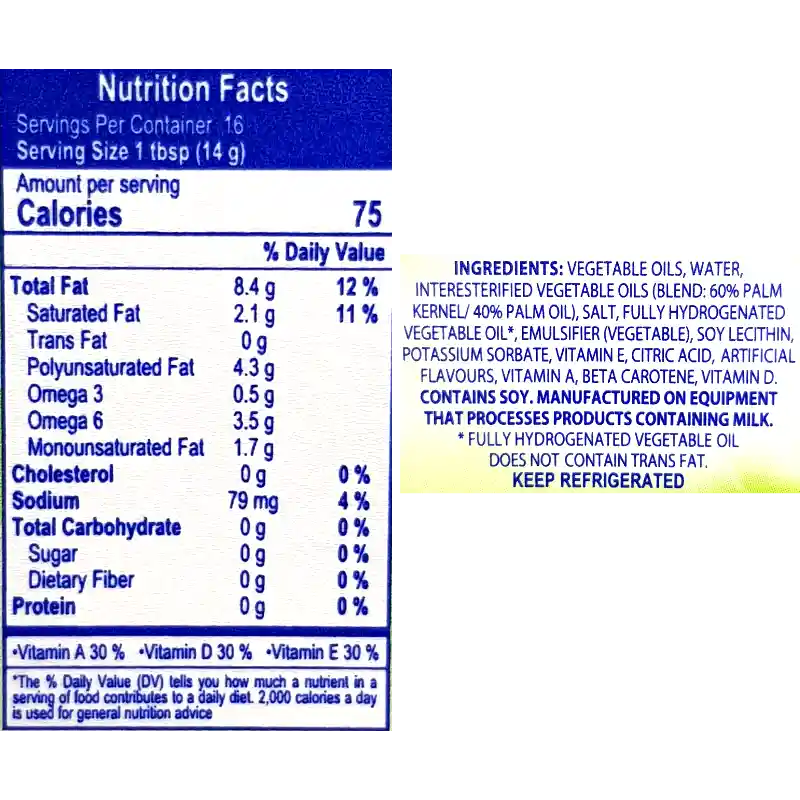 Flora Original Margarine is a delicious and versatile spread that is perfect for cooking, baking, and spreading on toast. It is made with natural ingredients and is free from artificial colours, flavours, and preservatives. This margarine is a great source of Omega 3 and 6, and is low in saturated fat. It is also suitable for vegetarians and vegans.