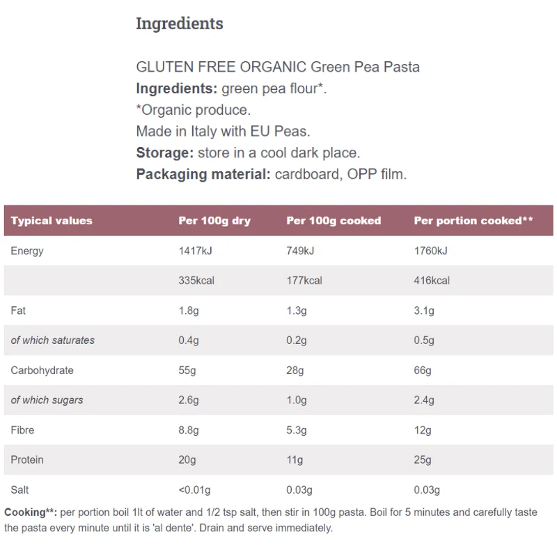 For a quick meal that is ready in minutes these gluten free and organic Green Pea Penne are a perfect alternative to your everyday pasta that is high in protein and a source of fibre. Made in Italy with 100% green peas, this pasta is delicious served hot, or cold in a salad, and is certainly not just for pea lovers!