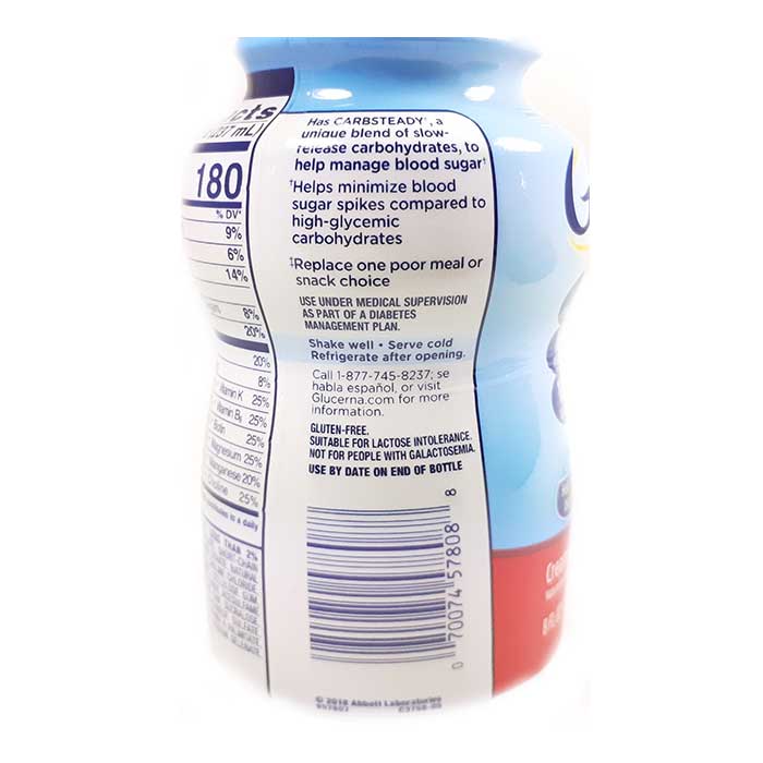 Glucerna Shake is specifically designed as a meal or snack replacement to help manage blood sugar and hunger. Strawberry flavour.