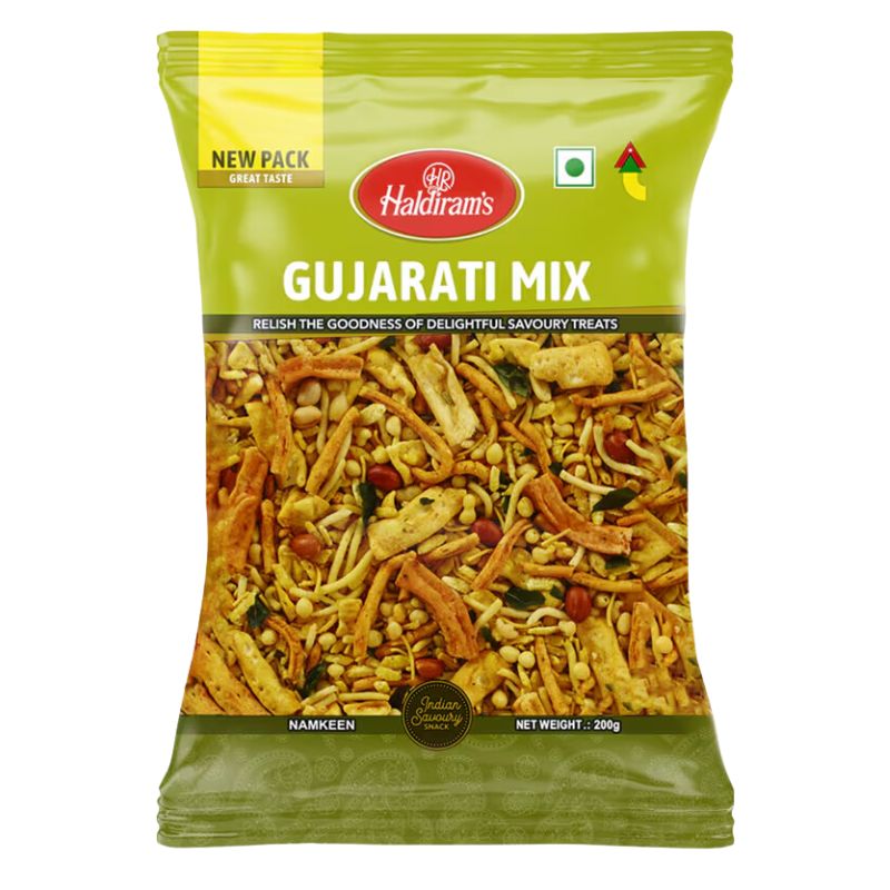 Haldiram’s Gunjarati Mix is a delicious blend of sweet and spicy blend of chickpeas flour noodles, rice flakes and peanuts. A favorite loved by many.