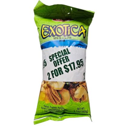 If you are in the mood for a delicious, healthy snack, Holiday’s Exotica Fruit & Nut Fusion is the perfect choice for you! It’s a delicious mix of a variety of crunchy nuts and dried fruits. This tantalizing treat will have you reaching for more! Perfect on the go snack. Special Offer- 2 Packs of Fruit & Nut Fusion  Net Weight- 60g