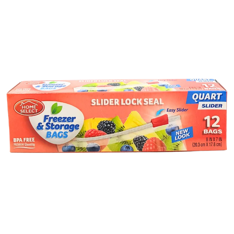 Home Select, Freezer & Storage Bags, Slider Lock Seal, 1qt (12 Pieces)