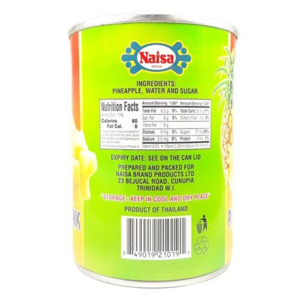 Pineapples are tropical fruits that are rich in vitamins, enzymes and antioxidants. They may help boost the immune system, build strong bones and aid indigestion. And, despite their sweetness, pineapples are low in calories. Naisa Pineapple Chunks can be used in any sweets, smoothies, and much more.
