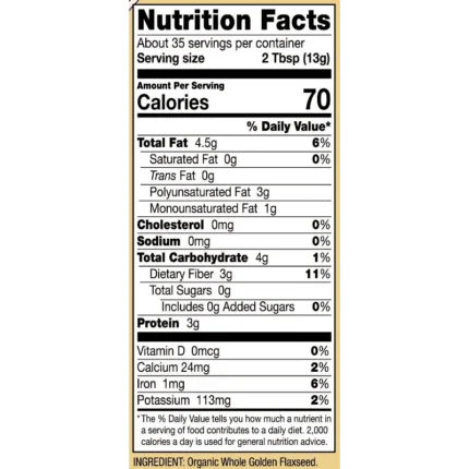 Bob's Red Mill Organic Flaxseed Meal is mild and nutty—sprinkle it over oatmeal and yogurt or stir it into smoothies and baked goods. We take high-quality golden flax and grind it at a cool temperature to preserve the oil and increase the bioavailability of the nutrients.