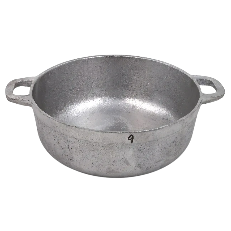 Iron Pot #9 is a durable cast iron pot that is perfect for slow cooking and simmering. It is designed to retain heat and provide even cooking.