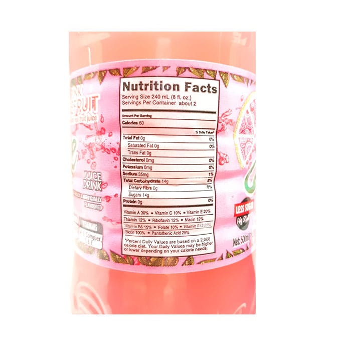 Delight your taste buds with this delicious naturally and artificially flavoured pink grapefruit juice!