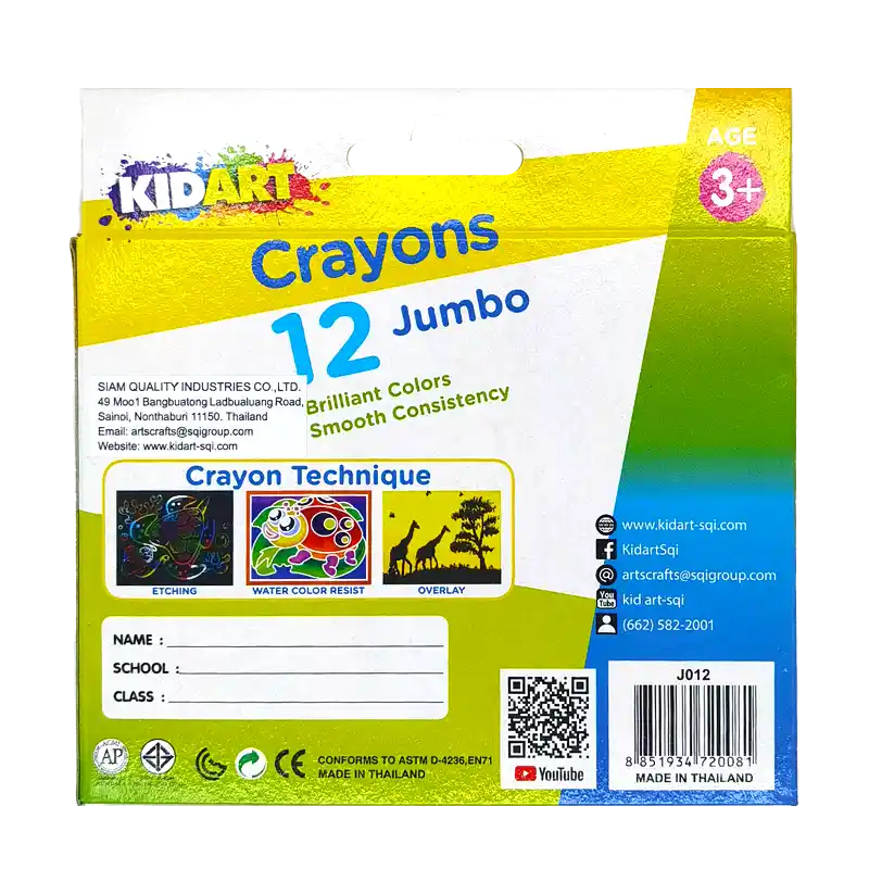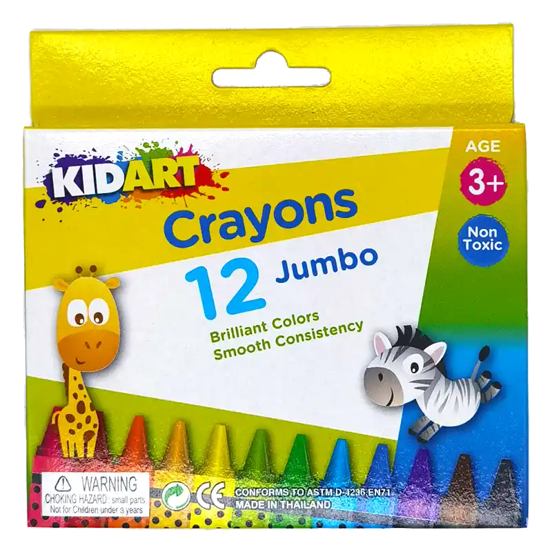 Create beautiful finished projects with Kid Art Crayons in a 12 Jumbo box. This crayon set contains classic colors as well as bright, fun shades to inspire creativity and imaginative play. These non-toxic crayons are made of high-quality materials to produce vibrant long-lasting color. Great for coloring, paper crafting projects and more.