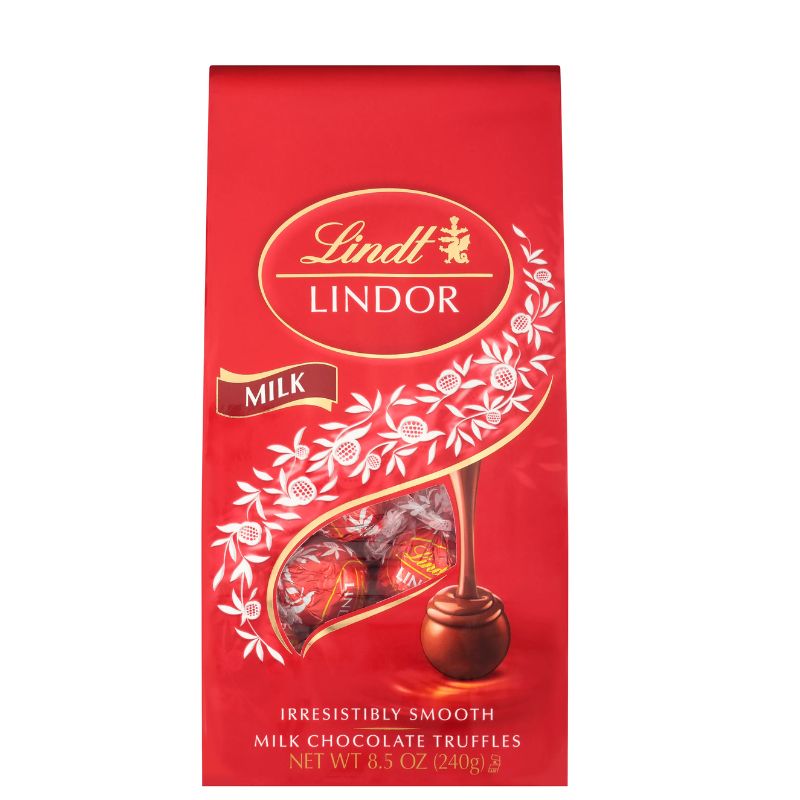 Indulge in premium Swiss-crafted chocolate with the LINDOR Milk Chocolate Bag. This 144 g pack contains individually wrapped smooth milk truffles, each designed to deliver that signature LINDOR experience: a delicate shell of rich milk chocolate and a luxuriously smooth melting centre.