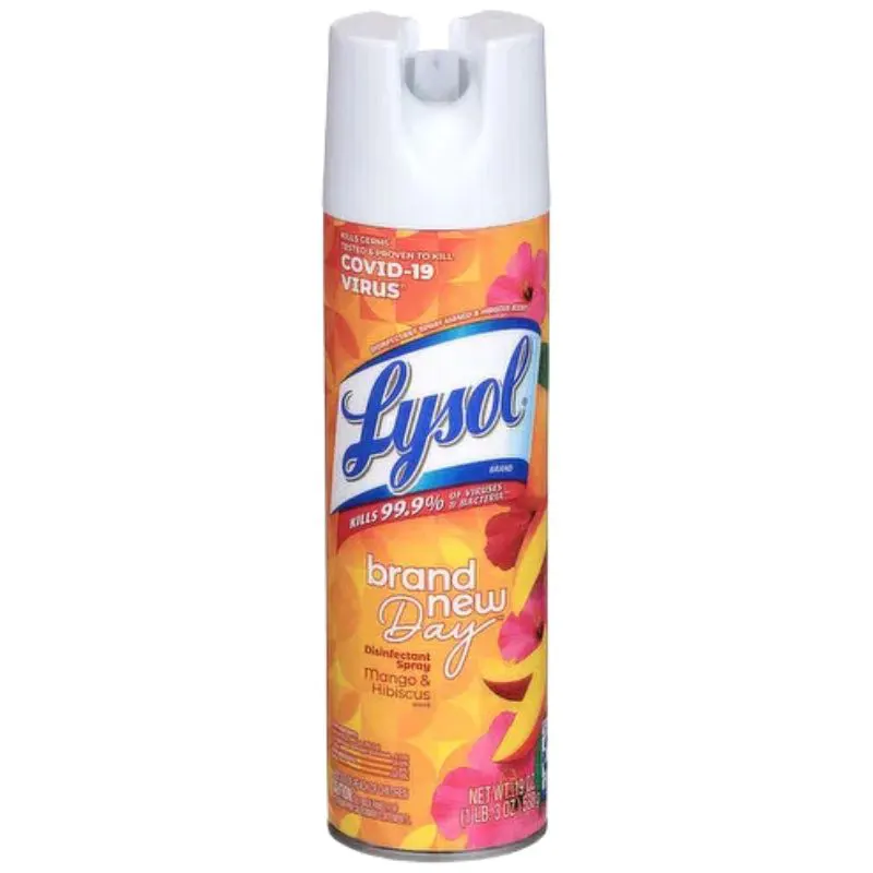 Keep your home clean and fresh with Lysol Disinfectant Spray in a delightful Mango & Hibiscus scent. This powerful spray kills 99.9% of viruses and bacteria, including cold and flu viruses, providing hospital-grade disinfection on hard and soft surfaces. Its tropical fragrance leaves your space smelling fresh and inviting while eliminating odors. Perfect for use on countertops, doorknobs, upholstery, and more. Fast-acting and bleach-free, it also helps prevent mold and mildew buildup.