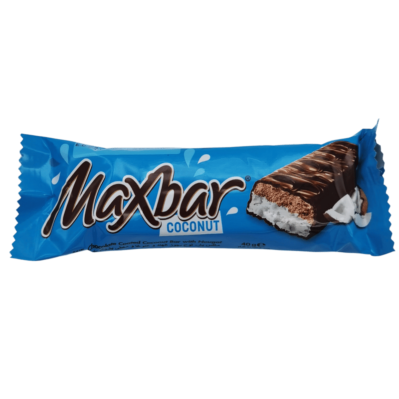 The Max Bar is a milk chocolate coated bar with coconut and nougat.