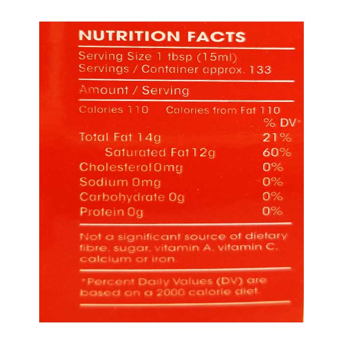 Made from 100% refined coconut oil, Nariel Cooking Coconut Oil has a wide range of uses in food and also in cosmetic applications. As an all-purpose use for frying and cooking, this coconut oil is excellent for fried bakes, roti, fish, chicken, and potato chips, as well as a great ingredient for ice cream and sweets.