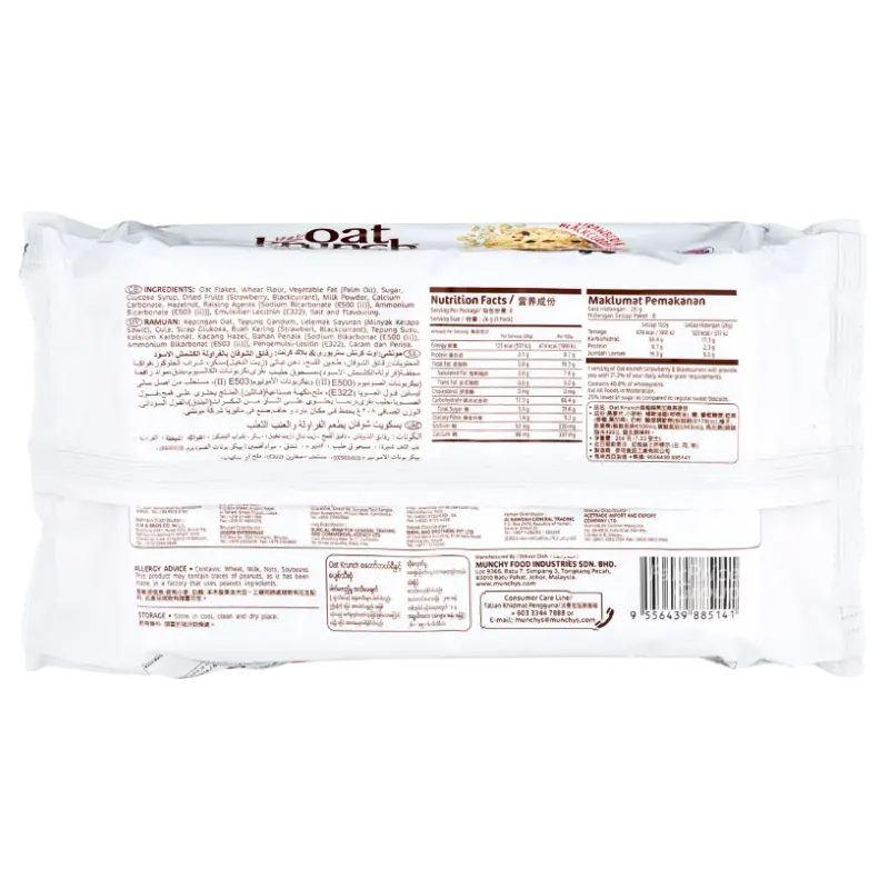 Krunch your way to a healthier start with the yummiest, healthy oat-based biscuit by Munchy’s! Have a berry tasty yet healthy crunch with our Oat Krunch Strawberry & Blackcurrant biscuits! Baked with juicy, fresh berries and specially selected oats and wheat for a wholesome crunch anytime, anywhere. Crunch on delicious Oat Krunch today!
