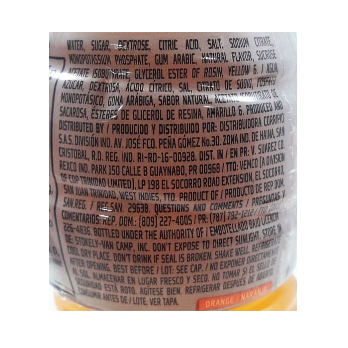 INGREDIENTS: Water, Sucrose, Glucose, Food Acids (330, 331), Monopotassium Phosphate, Sodium Chloride, Flavour, Colour (110).