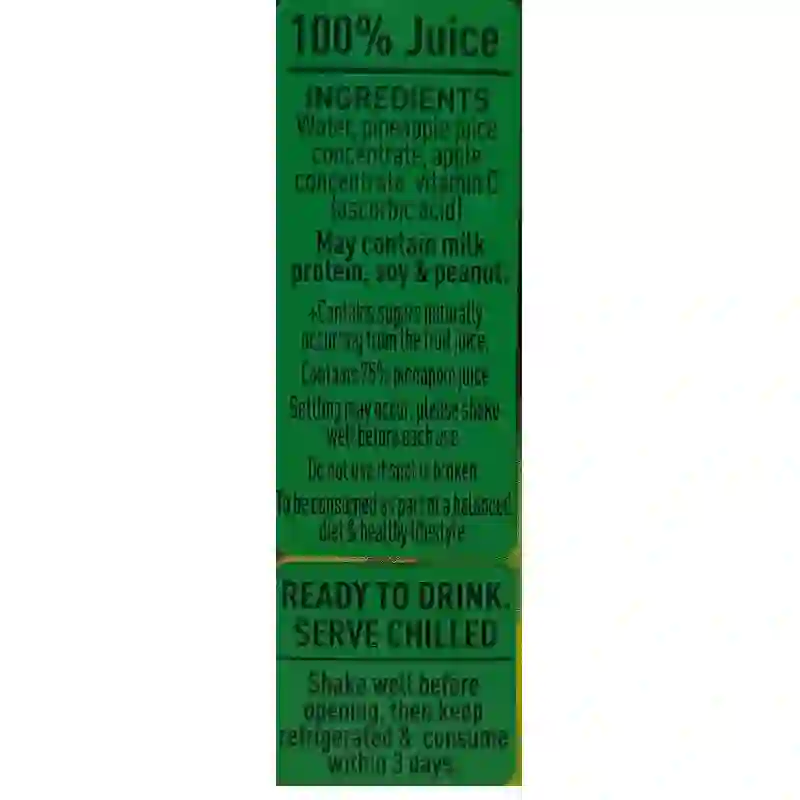 Orchard Pineapple 100% Juice is a 330ml beverage with no added sugar. It offers pure pineapple juice for a natural and refreshing drink.