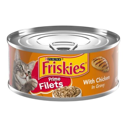Feed your cat's cravings with Purina Friskies Prime Filets Chicken & Gravy. Shredded chunks with real chicken cooked in savory juices keep your cat’s tummy happy and coming back for more.
