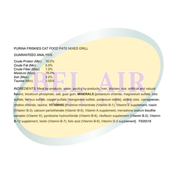 Purina Friskies Pate Mixed Grill is a classic mix of liver and chicken flavors, with a smooth, pleasing texture that will leave your cat purrfectly satisfied.
