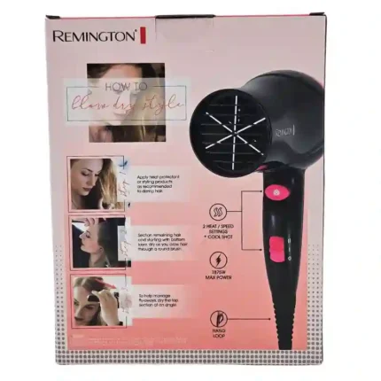 Get quick, effective drying and smooth styling with the Remington Hair Dryer. Designed for everyday use, it delivers strong airflow to help dry hair faster while maintaining a smooth, polished finish. With adjustable heat and speed settings, it allows you to customize your styling routine for different hair types and looks.