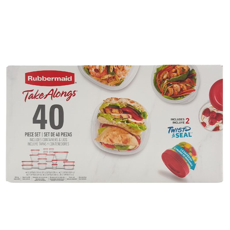 Store, organize and pack a variety of foods with these Rubbermaid Take Along Containers. Ideal for meal prep, lunch, snacks, leftovers and more, they have updated, more durable bright-red lids, while the ridged design makes stacking easy. This Rubbermaid 40 piece storage set is also BPA-free, freezer and top-rack dishwasher safe and the bases are microwave safe for reheating, making them a wonderful choice for taking to work, school, the office, on picnics and to just store food in your fridge or freezer as well. The thick walls make them ideal for everyday use and when you stack them they take up less space in your cabinets. Rubbermaid Take Along Containers keep your food fresh and prevent leaks and are ready to reheat and store your favorite foods.