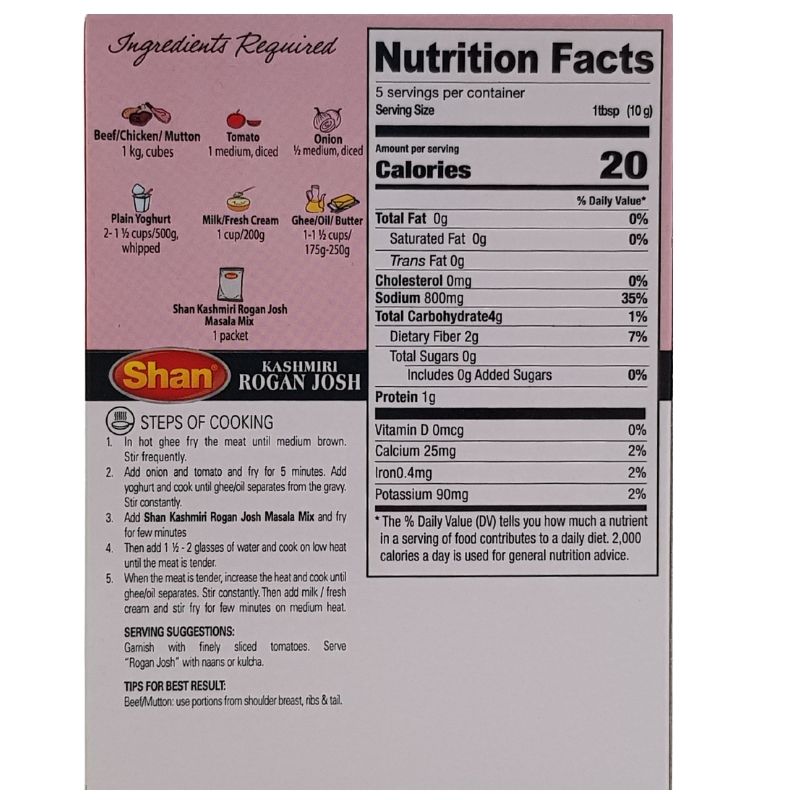 Shan Rogan Josh Masala 50G is a traditional Indian spice blend used to make a flavorful curry dish. It is a blend of aromatic spices, herbs, and chilli peppers for a unique flavor.
