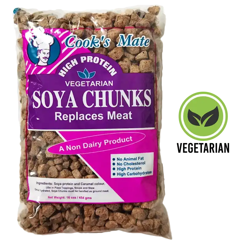 Cook’s Mate High Protein Soya Chunks is a healthy alternative to meat and has equal amounts of protein and carbohydrates but with no cholesterol. It can be used as a pizza topping or in soups and stews.