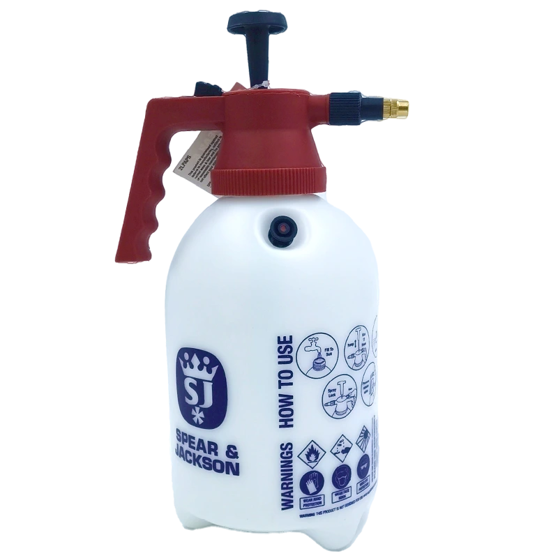 The Spear & Jackson Pump Action Pressure Sprayer is a manually operated pressure sprayer with a 2 L capacity. The translucent bottle is clearly marked with measurements in both litre and gallons for accuracy when filling or mixing water based non viscous fluids within the bottle.