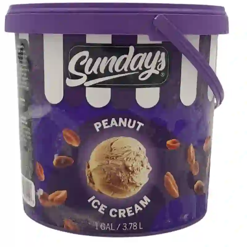 Sundays Ice Cream Peanut is a 1-gallon tub of peanut-flavored ice cream. It’s a large quantity, perfect for parties or large gatherings.