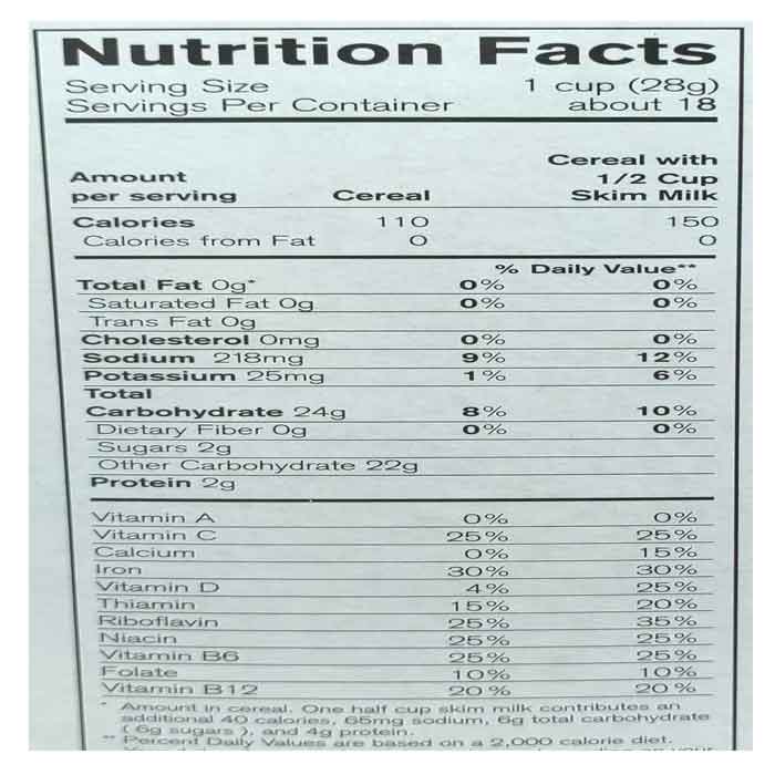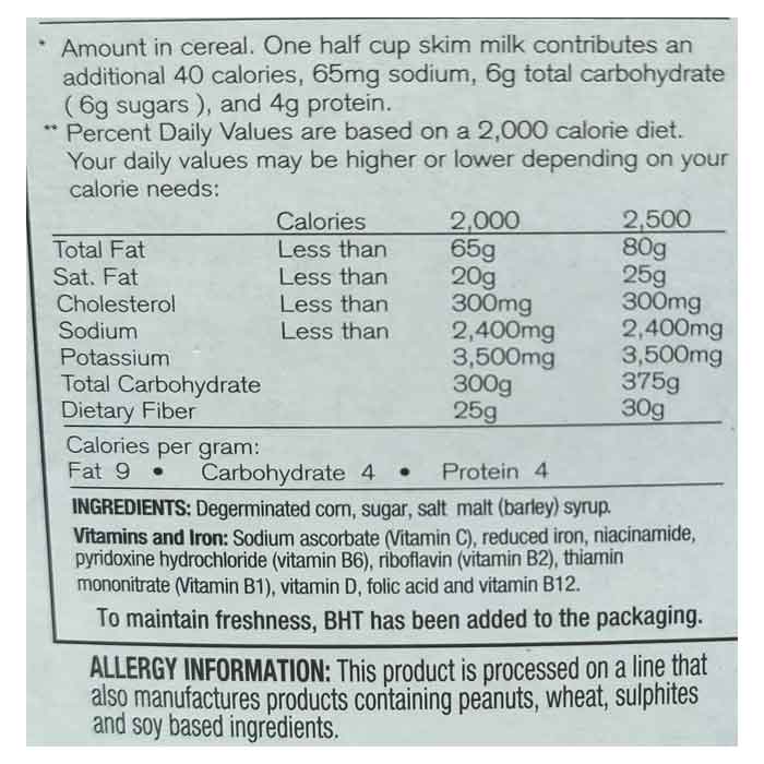 The tasty, crunchy freshness of traditional flakes made from corn fortified with 8 essential vitamins and iron.