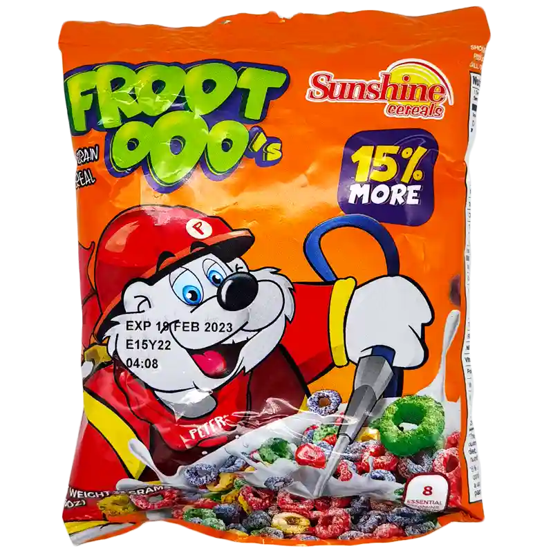 Enjoy the delicious, sweet, fruity taste of cereal with Sunshine Snack Froot Ooo’s Cereal. Made with multi grains, this cereal is an excellent source of essential vitamins and iron. Featuring brightly colored circles, your child will enjoy eating breakfast everyday!