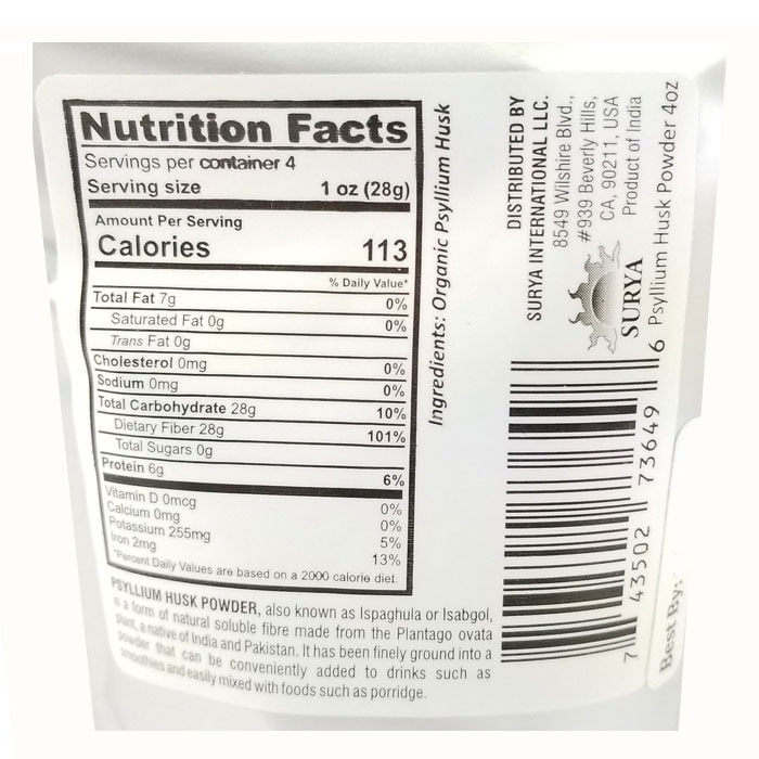 ORG. PSYLLIUM HUSK POWDER 4oz
