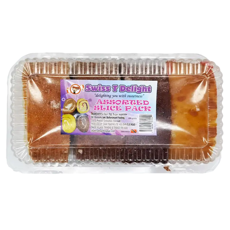 Swiss T Delight Assorted Slice Packed is a variety of delicious mouth, watering cake flavors filled with cream stuffed inside every bite. This slice of goodness can be served with ice-cream or enjoyed by itself for any party, function or special occasion. This product comes with four assorted cake slices in Raspberry jam, Cocoa, Cinnamon and Coconut.