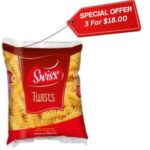 Swiss Twists Pastas are produced on the newest and most state of the art pasta manufacturing line in the world. Everyone can now find the quality pasta that almost any Italian or nouvelle cuisine recipe calls for at an affordable price. Ideal for all your favourite pasta dishes.