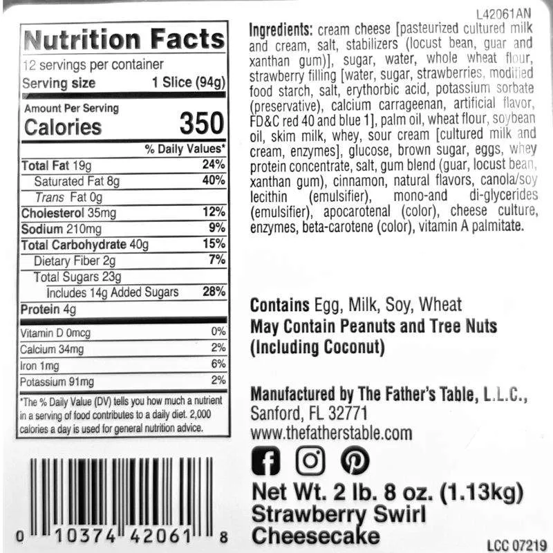 The Father’s Table, Strawberry Swirl Cheesecake 9″